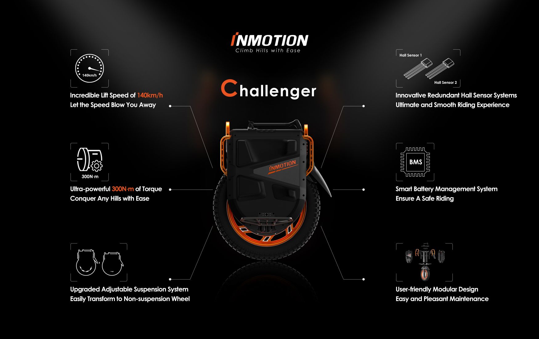 Denne EUC er til den som ønsker en high-performance EUC med maksimal kraft, kontrol og komfort – perfekt til både asfalt og offroad. Den har et stort 22" hjul og et avanceret affjedringssystem med dobbelt luftdæmpere, som giver en utrolig stabil og jævn kørsel, selv på ujævnt terræn.