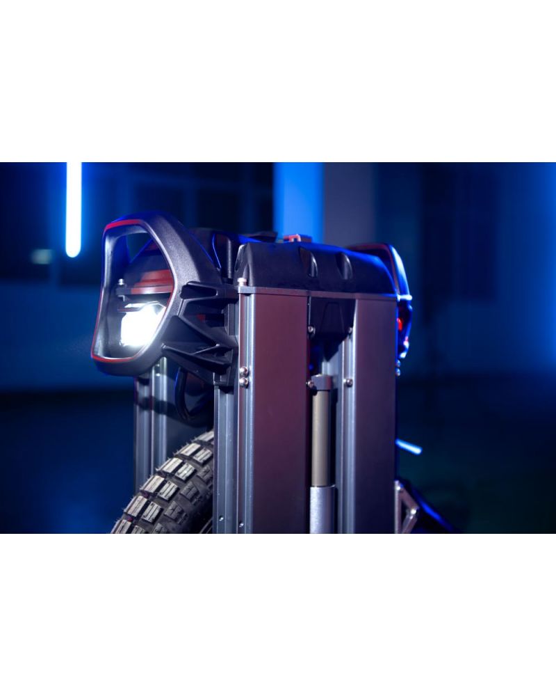 Lys og sikkerhed: Kraftig 20W forlygte med automatisk lysstyrke og baglys med bremselysfunktion.